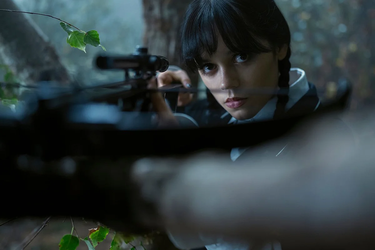 Netflix официально представил первый кадр Wednesday Season 2, подтверждая, что работа над сериалом активно продолжается. На представленной фотографии Уэнсдэй в исполнении Дженны Ортеги появляется в обновлённом образе: более мрачном, минималистичном и визуально взрослом.